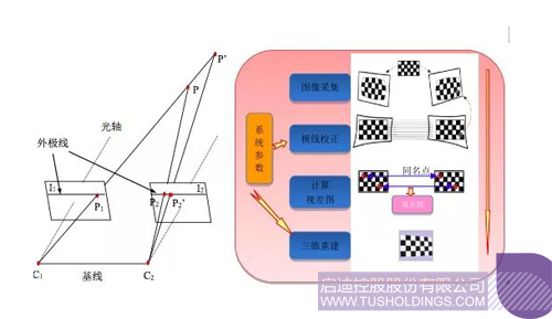 現(xiàn)實世界中的物體都是三維的,人眼所獲得的景物圖像卻是二維的,但是人類的視覺系統(tǒng)能夠很容易地從二維圖像中感知三維世界,人依據(jù)空間點在視網(wǎng)膜上成像位置的差異來感知物體的遠(yuǎn)近。三維人臉照相機就是模擬這一原理,通過采集多幅圖像來完成人臉的三維建模,三維全臉模型包括了左右耳朵之間的臉部三維模型。