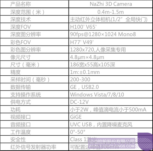 小型化光學(xué)3D全臉相機性能參數(shù)