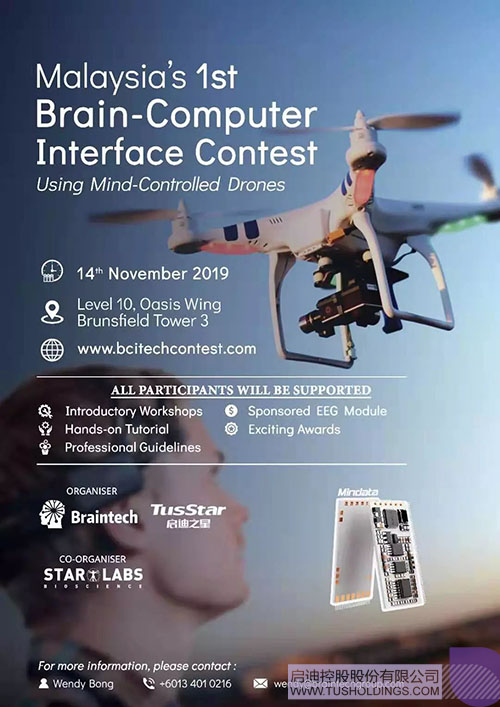 Braintech向與會(huì)的馬來(lái)西亞各高校大學(xué)生介紹:開(kāi)幕儀式后,一系列的預(yù)熱與培訓(xùn)活動(dòng)也將陸續(xù)登陸:推介會(huì)、講座、論壇、創(chuàng)意工坊等活動(dòng),讓參賽者更好地迎接比賽。比賽中,參與者需要用腦波控制無(wú)人機(jī)飛行10碼,并對(duì)儀器進(jìn)行編程優(yōu)化,比賽中的優(yōu)勝者:冠軍將獲得3000令吉,亞軍2000令吉,季軍1000令吉,并設(shè)有5個(gè)鼓勵(lì)獎(jiǎng)(500令吉)。
