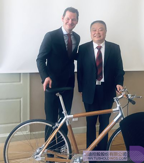 彭頃砡贈(zèng)予中英聯(lián)合創(chuàng)新成果產(chǎn)品竹材料自行車