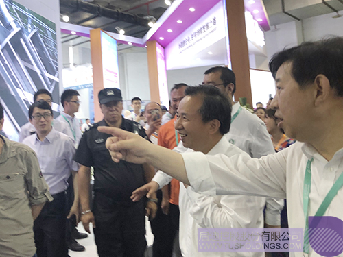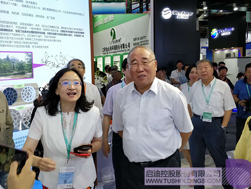 生態(tài)環(huán)保部部長李干杰(右二)到浦華環(huán)保展區(qū)參觀指導(dǎo)