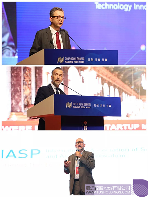 Michele Cecchi、Javier Gimeno、Luis Sanz、陳鴻波、沈童剛、湯浩應(yīng)南京市人民政府邀請(qǐng),參加了當(dāng)天上午由南京市人民政府主辦的紫金山創(chuàng)新大會(huì)暨2019南京創(chuàng)新周開幕式活動(dòng),并應(yīng)邀與南京市相關(guān)領(lǐng)導(dǎo)會(huì)談,就推動(dòng)國(guó)際合作達(dá)成共識(shí)。