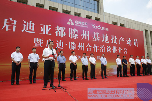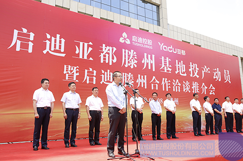 邵士官在投產(chǎn)動員會上致辭。他說,啟迪控股資源豐富、實力雄厚,是全球科技服務(wù)領(lǐng)域的企業(yè)龍頭和行業(yè)典范。今天投產(chǎn)的啟迪亞都加濕器項目,科技含量高、市場前景好、帶動能力強,對于加快我市智能制造產(chǎn)業(yè)發(fā)展、助力新舊動能轉(zhuǎn)換具有重要意義。項目落戶滕州,必將開啟雙方友好合作、攜手發(fā)展新篇章。我們將秉持“親商、安商、富商”的理念,把推進(jìn)項目建設(shè)作為市委、市政府的重點工程來抓,扎實做好服務(wù)支持推動工作。希望啟迪以項目竣工投產(chǎn)為新起點,進(jìn)一步加大投入和管理創(chuàng)新力度,推動更多項目、資金、人才、技術(shù)落戶滕州,努力實現(xiàn)企地雙贏,爭取早日建成國內(nèi)一流的智能制造基地。