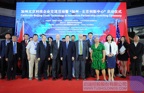 6月7日,加州-北京科技企業(yè)交流活動(dòng)暨加州-北京創(chuàng)新中心啟動(dòng)儀式在北京市中關(guān)村國(guó)際創(chuàng)新中心舉行。北京市政協(xié)副主席閆仲秋,科技部國(guó)際合作司副司長(zhǎng)祝學(xué)華,北京市海淀區(qū)委書(shū)記崔述強(qiáng),中關(guān)村管委會(huì)國(guó)際業(yè)務(wù)總監(jiān)曾曉東,國(guó)務(wù)院參事、中國(guó)可再生能源學(xué)會(huì)理事長(zhǎng)石定寰,清華大學(xué)原常務(wù)副校長(zhǎng)、國(guó)家氣候變化專家委員會(huì)副主任何建坤等蒞臨了此次活動(dòng)?;顒?dòng)由海淀區(qū)委副書(shū)記、海淀區(qū)區(qū)長(zhǎng)于軍主持。啟迪控股總裁袁桅出席并致辭。