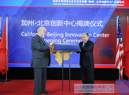 活動(dòng)中,海淀區(qū)副區(qū)長(zhǎng)李長(zhǎng)萍女士與美國(guó)加州政府能源委員會(huì)主席羅伯特·維森米勒先生共同簽署了“清潔能源與技術(shù)創(chuàng)新合作伙伴戰(zhàn)略協(xié)議”;海淀區(qū)委書(shū)記崔述強(qiáng)先生與加州能源委員會(huì)主席羅伯特?維森米勒先生共同為“加州-北京創(chuàng)新中心”揭牌。同時(shí),美國(guó)加州大學(xué)、清華控股與啟迪清潔能源集團(tuán)共同發(fā)起了加州-中國(guó)清潔技術(shù)基金。未來(lái),加州-北京創(chuàng)新中心將作為美國(guó)加州政府在京設(shè)立的唯一創(chuàng)新服務(wù)平臺(tái),輔以產(chǎn)業(yè)創(chuàng)新基金,成為集空間載體與創(chuàng)新服務(wù)為一體綜合機(jī)構(gòu),最大限度的促進(jìn)在能源、環(huán)保等行業(yè)上的技術(shù)交流、投融資服務(wù)、產(chǎn)業(yè)合作、資源共享,建立長(zhǎng)久密切的合作關(guān)系。