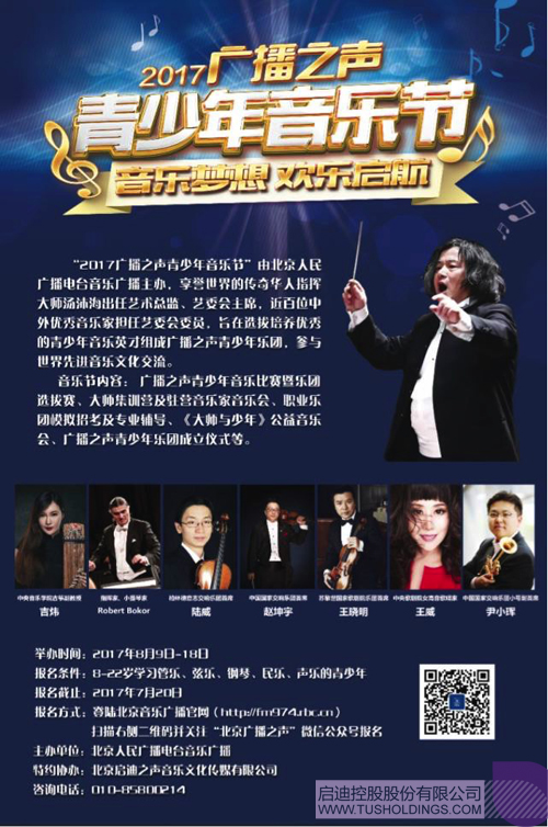 啟迪之聲與北京人民廣播電臺(tái)音樂(lè)廣播聯(lián)袂創(chuàng)辦了國(guó)內(nèi)首個(gè)青少年音樂(lè)節(jié)——“2017廣播之聲青少年音樂(lè)節(jié)”,音樂(lè)節(jié)由獲格萊美獎(jiǎng)、享譽(yù)世界的傳奇華人指揮大師湯沐海出任藝術(shù)總監(jiān)、藝委會(huì)主席,聘請(qǐng)國(guó)內(nèi)外超過(guò)100位優(yōu)秀的音樂(lè)家擔(dān)任藝委會(huì)委員,通過(guò)音樂(lè)比賽、大師集訓(xùn)營(yíng)、駐營(yíng)音樂(lè)家音樂(lè)會(huì)、《大師與少年》音樂(lè)盛典等一系列活動(dòng),選拔培養(yǎng)優(yōu)秀的青少年音樂(lè)英才組成樂(lè)團(tuán),參與世界先進(jìn)音樂(lè)文化交流。