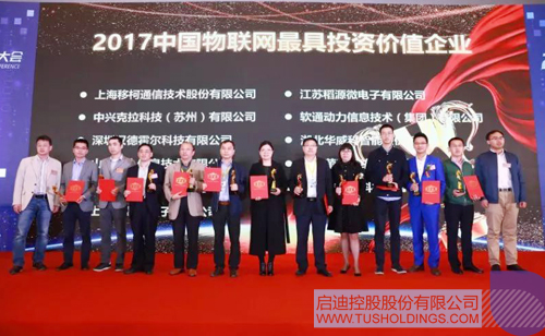 啟迪控股成員江蘇稻源微電子榮獲大會(huì)頒發(fā)的“2017中國(guó)物聯(lián)網(wǎng)最具投資價(jià)值企業(yè)”獎(jiǎng)項(xiàng)。