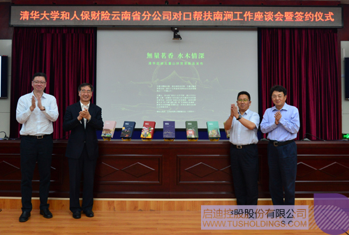 簽約儀式后,由云南啟迪協(xié)同啟迪科服成立的無量山啟迪大健康科技有限公司“土林鳳凰”新產(chǎn)品正式發(fā)布,姜勝耀、吉向陽、龍大偉、人保財險云南省分公司總經(jīng)理雙磊(清華校友)共同為新產(chǎn)品揭幕。作為啟迪精準(zhǔn)助力南澗發(fā)展“六個一”之茶產(chǎn)業(yè)發(fā)展舉措,此次新品以“無量茗香 水木情深”為主題,由清華大學(xué)美院師生進(jìn)行設(shè)計。