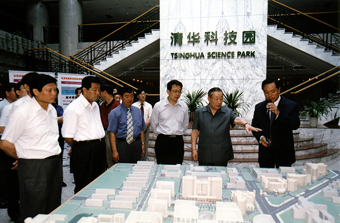 2002年,時任國務院副總理李嵐清、時任北京市市委書記賈慶林等視察清華科技園。
