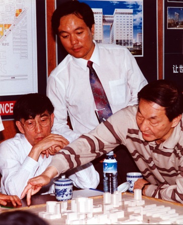 1996年,在清華科技園建設初期,時任國務院副總理朱镕基在聽取時任清華大學校長王大中院士(左),清華科技園發(fā)展中心主任、啟迪控股榮譽董事長梅萌(中)的工作匯報。