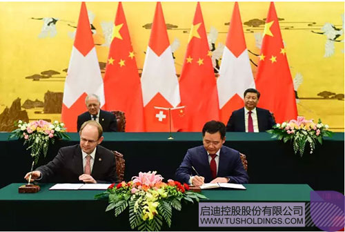 2016年4月8日,在人民大會堂隆重舉行的中瑞兩國系列重要合作簽約儀式上,啟迪控股與瑞士國家創(chuàng)新園簽署了友好合作協(xié)議。中國國家主席習近平,瑞士聯(lián)邦主席施耐德?阿曼出席并見證了簽字儀式。啟迪控股時任總裁王濟武,瑞士國家創(chuàng)新園總裁雷蒙德?克龍分別代表雙方在合作協(xié)議上簽字。