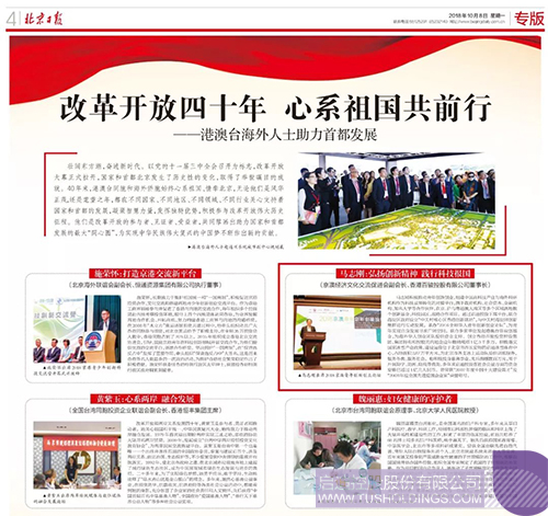 10月8日,北京日報發(fā)表改革開放40周年專題文章《改革開放四十年 心系祖國共前行 ——港澳臺海外人士助力首都發(fā)展 》,文中報道京澳經(jīng)濟文化交流促進會副會長、啟迪控股董事、啟迪金控董事長馬志剛作為港澳臺愛國企業(yè)家代表,多年來積極投身京港澳創(chuàng)新交流合作,助力華人青年創(chuàng)新創(chuàng)業(yè)。以下為相關報道內容節(jié)選。
