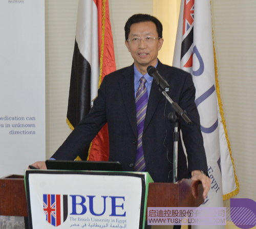 首先,BUE大學(xué)董事會主席Mohamed Farid Khamis先生對啟迪之星(開羅)的最終落地表示祝賀,并在致辭中用兩個“最”來形容大學(xué)科技園的意義以及與啟迪的合作:建設(shè)和運(yùn)營大學(xué)科技園及孵化器是當(dāng)下BUE大學(xué)對埃及社會進(jìn)步和經(jīng)濟(jì)發(fā)展能做出的最大貢獻(xiàn);中國的啟迪控股是BUE建設(shè)運(yùn)營大學(xué)科技園和孵化器最理想的合作伙伴。Mr. Farid Khamis Khamis表示,在啟迪的支持和幫助下,BUE大學(xué)有信心將大學(xué)科技園建設(shè)運(yùn)營為埃及乃至北非最成功、最有影響力的科技園。