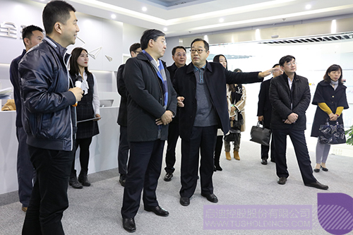 王鳳朝董事長(前排左二)一行參觀啟迪控股數(shù)字展廳