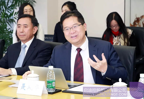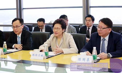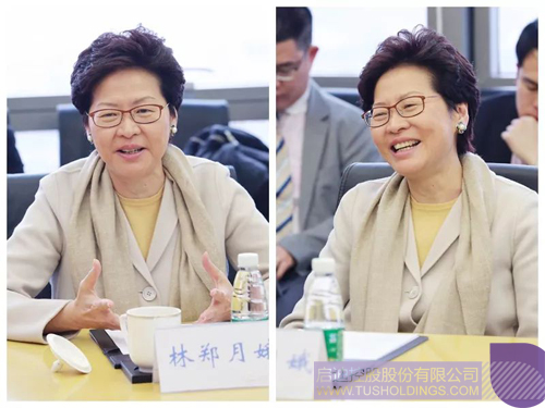在清華控股會議室,林鄭月娥一行聽取了清華控股及成員企業(yè)的發(fā)展情況介紹。
