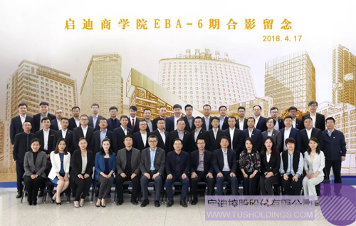 王濟(jì)武董事長、李志強(qiáng)書記、王書貴常務(wù)副總裁、蔡曉衛(wèi)常務(wù)副總裁、趙東副總裁與啟迪商學(xué)院EBA-6期學(xué)員合影