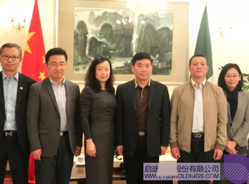 宋雪峰總領(lǐng)事(右三)與啟迪項目團(tuán)隊在米蘭