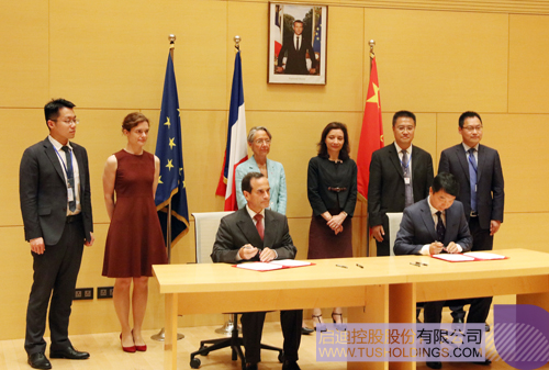 啟迪控股常務(wù)副總裁趙東(前排右)和法國ENGIE集團(tuán)副總裁Didier Holleaux(前排左)代表雙方簽署合作協(xié)議