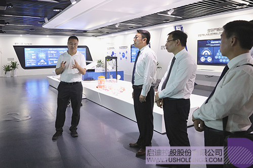 座談會(huì)前,杜鵬一行在啟迪控股高級(jí)副總裁、啟迪清潔能源集團(tuán)董事長(zhǎng)兼總裁文輝的陪同下參觀了啟迪控股數(shù)字展廳,詳細(xì)考察了解了啟迪控股相關(guān)業(yè)務(wù)布局和發(fā)展情況。文輝著重介紹了啟迪清潔能源板塊的業(yè)務(wù)模式。